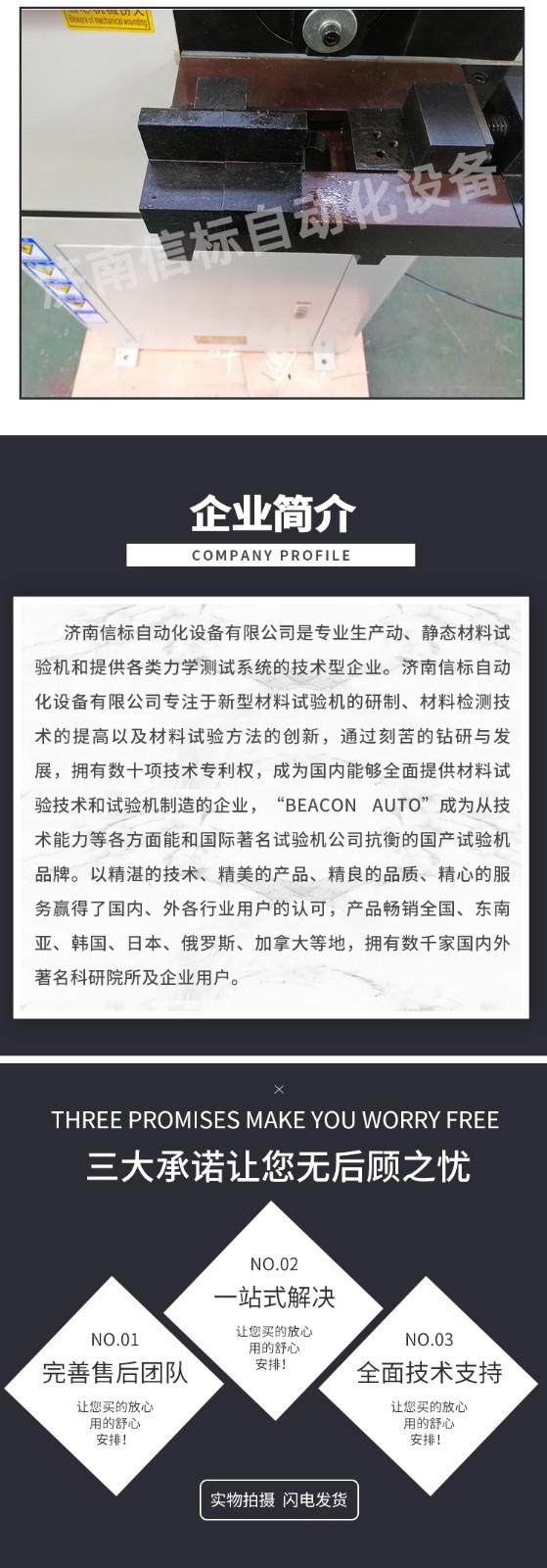 濟南信標自動化設備有限公司主要生產:動靜態萬能疲勞試驗機,接骨板彎曲試驗機,縫合線拉伸疲勞試驗機,髖膝關節磨損試驗機,電子萬能試驗機、液壓萬能試驗機、巖石三軸、四軸,電液拉力試驗機,材料試驗機,高低溫蠕變,高低頻疲勞,拉伸、扭轉、杯突等二十多個系列兩千多個的品種。