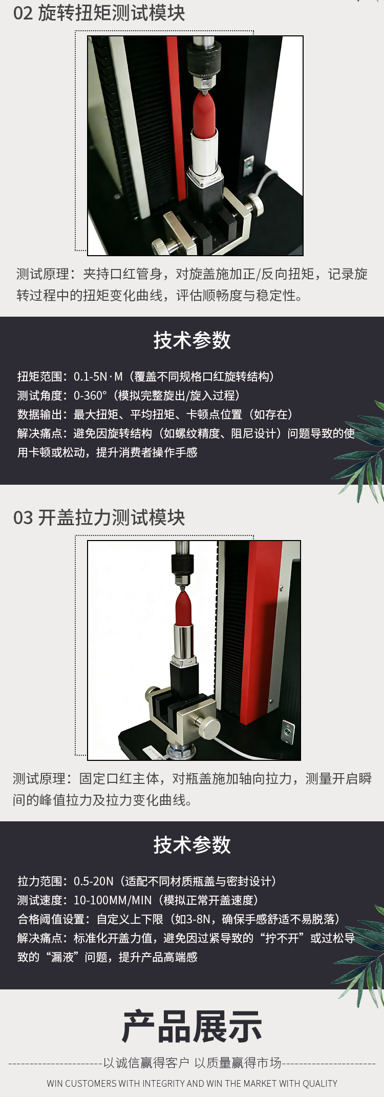 口紅綜合性能試驗機 膏體抗斷測試 旋轉扭矩測試 開蓋拉力測試