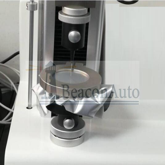 WDC-5鋰電池隔膜穿刺強度試驗機 穿刺強度定義: 將直徑為100mm的試片安裝在樣膜固定夾環(huán)上,然后用直徑為1.0mm,球形頂端半徑為0.5mm的鋼針,以(50±5)mm/min的速度去頂刺,讀取鋼針穿透試片的大負(fù)荷,測試片數(shù)5個以上,取其平均值。 塑料薄膜的抗穿刺能可更全面反映薄膜的抗穿刺性能。 塑料薄膜或復(fù)合薄膜的耐穿刺力是檢測包裝材料的重要指標(biāo)之一,尤其是對于蒸熟肉制品包裝,例如禽類肉制品,其中骨頭對包裝材料有較強的穿刺能力,因此,測試包材的穿刺強度是包材廠家及食品生產(chǎn)企業(yè)必檢項目。其實驗方法在GB/T 10004-2008(包裝用塑料復(fù)合膜、袋干法復(fù)合、擠出復(fù)合)有明確規(guī)定。